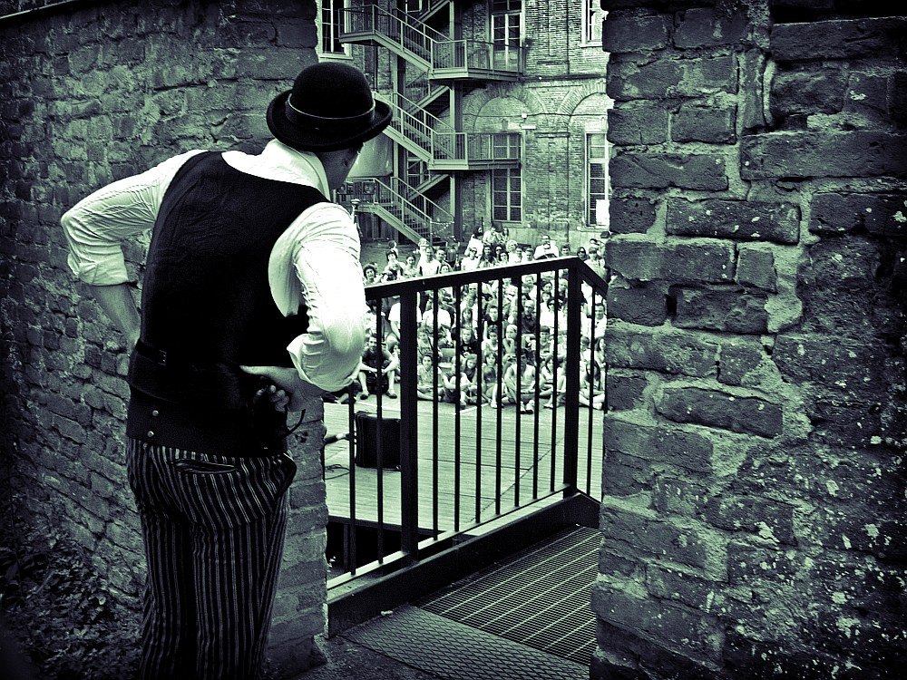 é una delle rare situazioni dove l'intervento in post-produzione per aggiungere una propria scelta d'intonazione al posto del classico bianco/nero o dei colori naturali, riesce a renderla esteticamente più coinvolgente, complice anche quella scala antincendio ripresa nello sfondo, crea un'atmosfera tipo Londra 1880, si discosta un pò da quello che una scena street dovrebbe rappresentare nell'osservatore, cioè un'attimo di vita reale ripreso in un'ambiente umano, l'intonazione di solito serve a coprire eventuali pecche compositive, cercando di arricchire la scena povera di suo