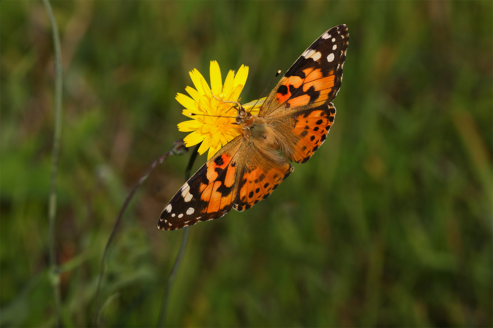 Bella la mf su tutta la farfalla vista anche la posizione; la compo mi piace un po' meno io l'avrei decentrata di piu' togliendo quel filo di erba sulla sx e la sciato un po' piu' di spazio sopra.