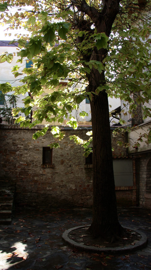Un albero chiuso nella stretta corte fra le case che salendo verso l'alto si gode il solicello ottobrino. Si potrebbe riassumere in queste parole questa fotografia semplece ma efficace nel suo intento. Buona la gestione del poco spazio a disposizione per il punto di ripresa. Ciao Tiziano