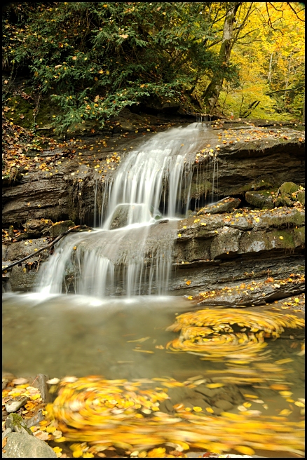 la trovo molto molto affascinante, non tanto per la cascata ed i tempi mossi (ottimamente resi, ci mancherebbe) ma il primo piano con i vortici di foglie è davvero una chicca speciale!