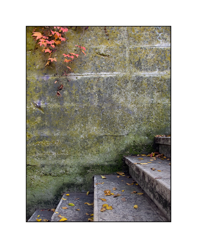 Le foglie ancora attaccate ai rampicanti semprano quasi protendersi verso le altre "sorelle" già cadute in un senso di solidarietà appena accennato.