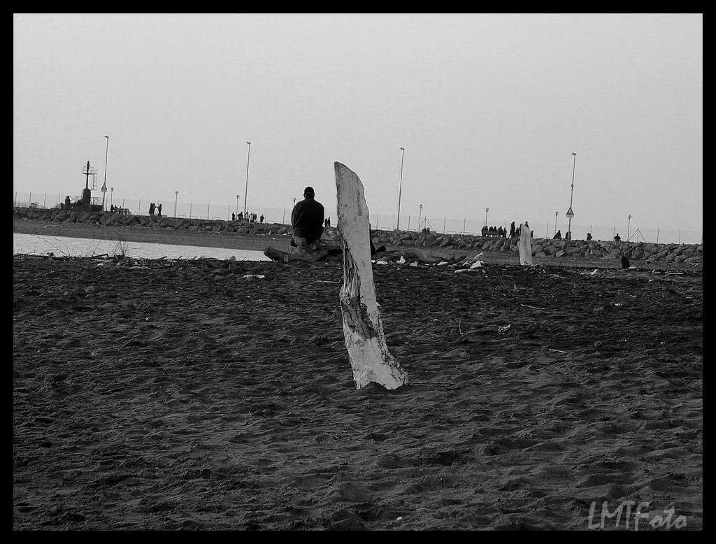 Il bn non enfatizza la profondità (grigio in primo piano = grigio del molo, mare = cielo).