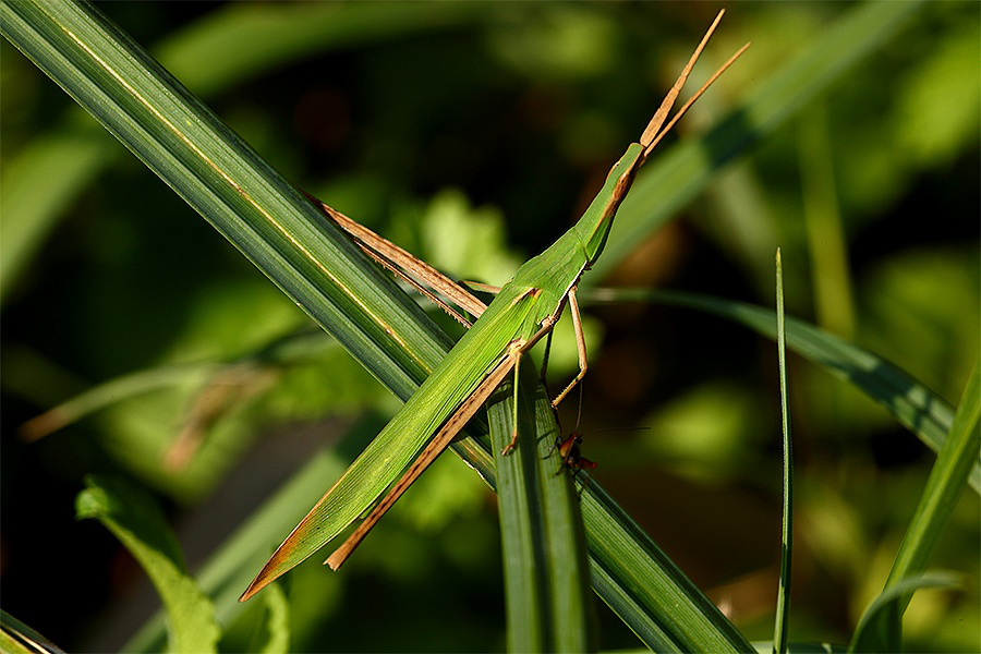 Le Acridi normalmente si lasciano avvicinare ma rimangono mimetizzate nel verde.
