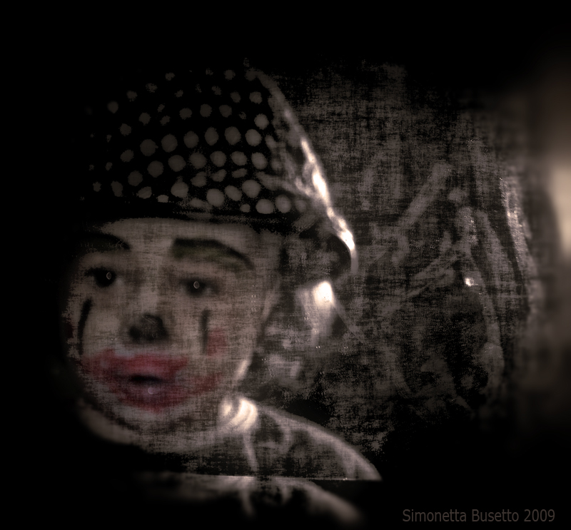 Una foto che presenta un mosso di fondo ma comunque mantiene un certo grado di suggestione visiva che per fortuna si confà al soggetto truccato da pagliaccio. VCarina. Ciao Tiziano