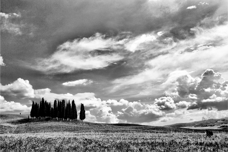 Il cielo bruciato bilancia perfettamente il nero profondo degli alberi (molto chiuso, è vero... ma nel B/N la chiusura delle ombre non è necessariamente un difetto)
