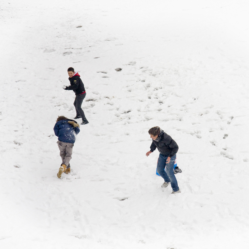 Proverei un b/n, rendendo perfettamente bianca la neve con solo qualche orma... chissà cosa ne verrebbe fuori.