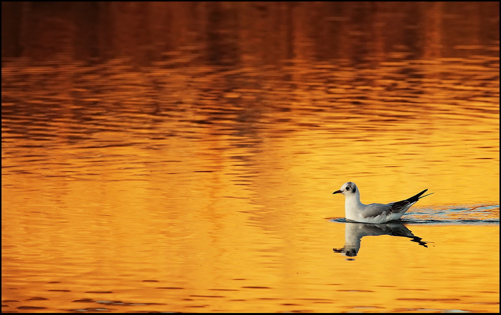 Molto bella. La lamina d'oro martellato, o mare di oro liquido che sia, in cui il gabbiano si specchia è un incanto. Un tipo di foto che a me piace estremamente. Dal momento che in una sezione di critica dobbiamo sforzarci a suggerire anche eventuali aspetti migliorabili, provo a suggerire (senza però essere sicuro di dirla giusta, sicché facci la dovuta tara) che forse se attendevi un istante, o spostavi di pochissimo l'angolo di puntamento in modo da avere all'incrocio dei terzi non il becco del gabbiano ma il suo centro corpo, in pratica un'incollatura più avanti, gli spazi venivano bilanciati ancora meglio.
