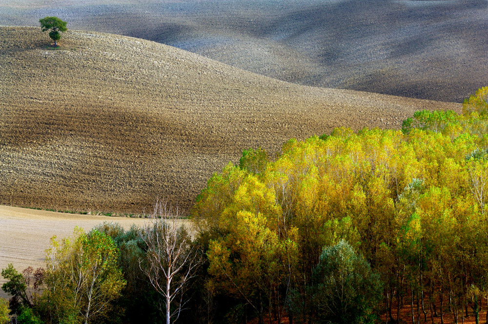 Molto bella la grana sabbiata ( sopratutto sugli alberi ), ottimo il gioco di ombre e luci. Il titolo azzeccatissimo.Bello inoltre il grafismo delle montagne solcate.