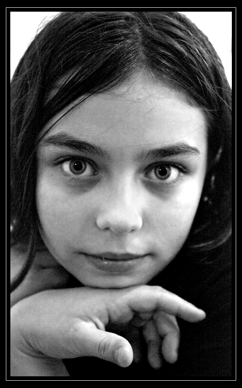 Mi piace moltissimo, per l'espressione, la posa e gli occhi sgranati. Peccato solo per le bruciature sullo zigomo, ma, anche se ci si mettono d'impegno, non riescono a rovinare questa bellissima foto.