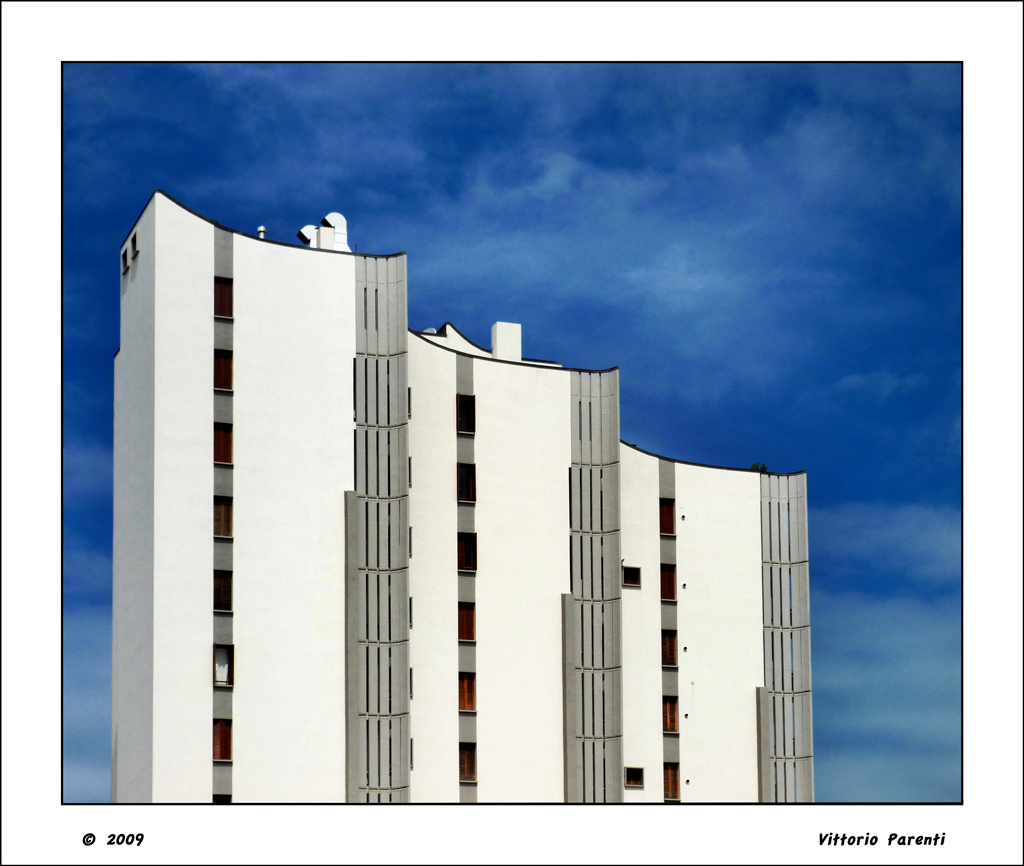 Un preciso e buono scatto di questa geometria in serie. Un bel trittico oltretutto che aggiunge dettagli man mano che si sale. Ed hai anche avuto fortuna, con quell'unico, solo balcone spalancato al mondo.. Wink