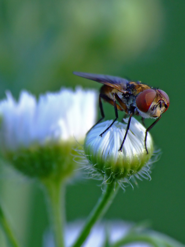 Anche il titolo è azzeccato: il poco spazio davanti agli occhi del soggetto di solito provoca claustrofobia, ma in questo caso sembra proprio che la mosca guardi con apprensione qualcosa che è fuori campo!