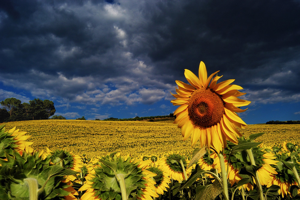 a me la foto piace per la bella luce, per il mare di giallo su cui incombe la minaccia temporalesca.