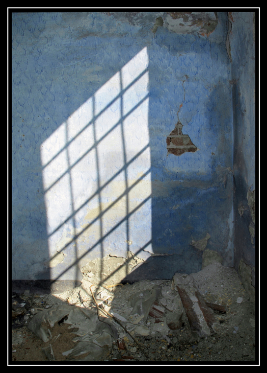 | Piacevole e vitale questa macchia chiara di luce sulla parete color celeste pastello, variegata dalle linee d'ombra trasversali dell'inferriata della finestra. Una foto su un argomento a te sempre caro e generalmente ben svolto. Bene, bene. Ciao Tiziano |