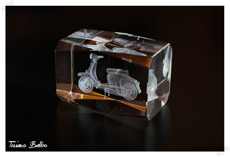 I colori attorno alla lambretta ben si addicono con lo sfondo...ma la base dell'oggetto riporta un taglio molto opaco e, in questo caso, poco fotografabile