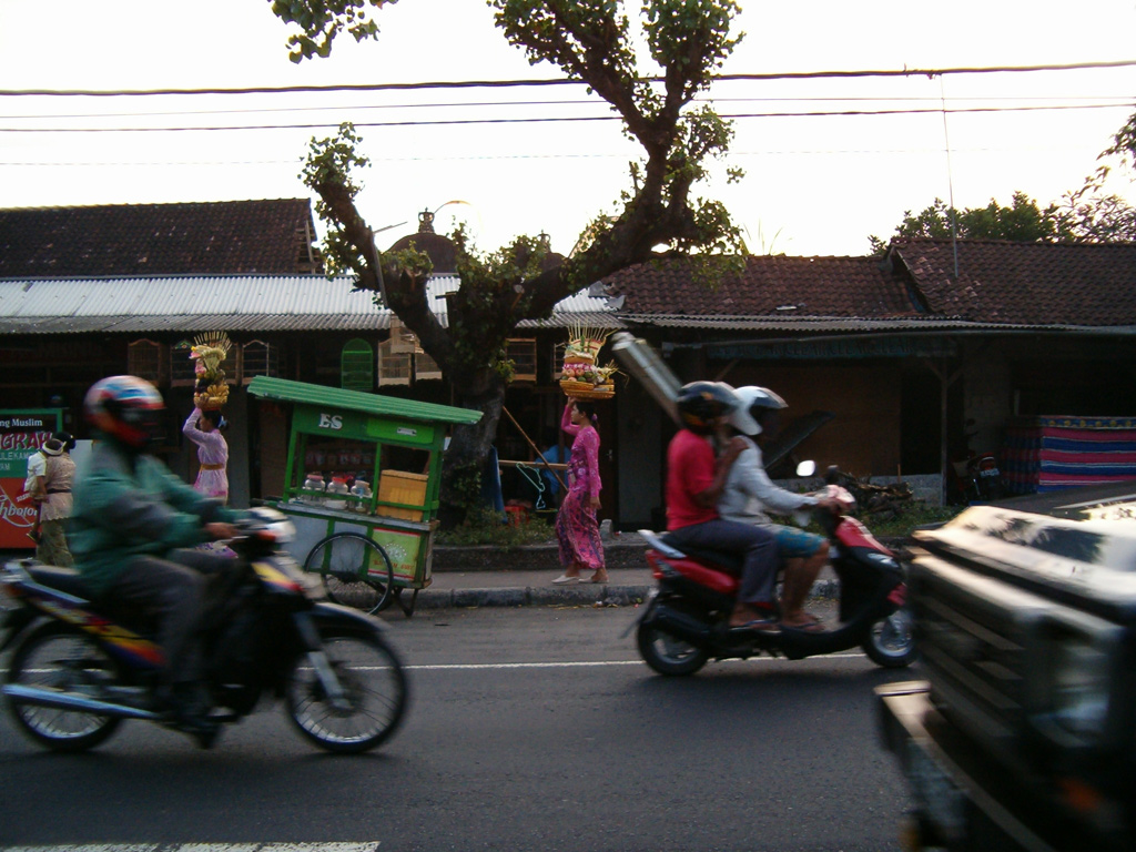 un po' troppo caotica. La jeep in primo piano, i motorini in secondo, fuori fuoco e mossi sono di grosso impiccio allo sguardo che si posa sulla donna con il cesto ma poi é disturbato del resto.
