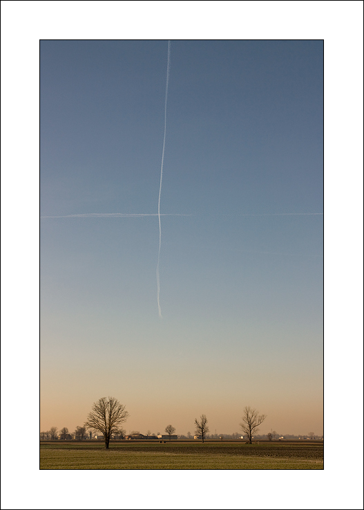 Misurata nei toni, perfetta la luce...e un piccolo colpo di fortuna questo intreccio di scie che ti ha regalato tutta una serie di interpretazioni...