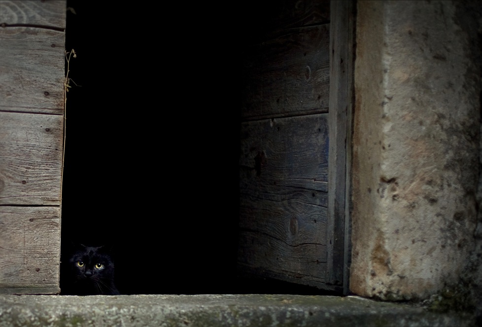 Hai colto con intensità un momento speciale;gli occhi come lampi sul cupo delle ombre con la cornice naturale delle ante.