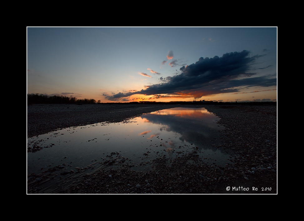 Per la zona bassa l'idea era di concentrare lo sguardo su determinate zone del fotogramma e la mia intenzione era proprio quella di enfatizzare maggiormente il riflesso della pozza d'acqua e il cielo...rendendo leggibile, sempre nei limiti, il resto dell'immagine