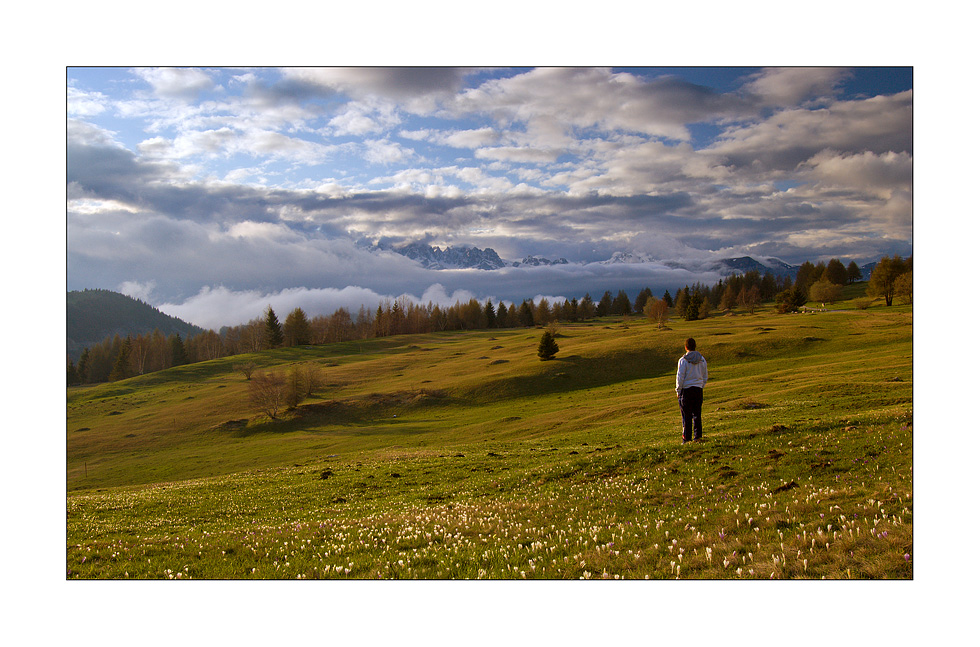 panorama bellissimo e drammatico, anche grazie alle nubi a corredo. La figura umana impreziosisce il tutto.