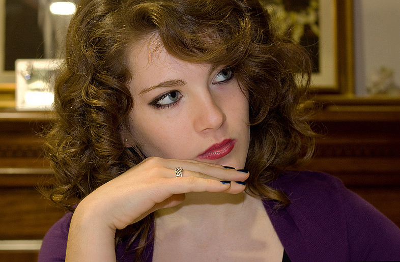 Anche qui, come nell'altro ritratto con la bambina, hai saputo scegliere posa, colori e anche inquadratura che sono perfetti per il soggetto. In questo caso la bellezza sofisticata della ragazza calza alla perfezione con la posizione della mano, con la posa e lo sguardo.