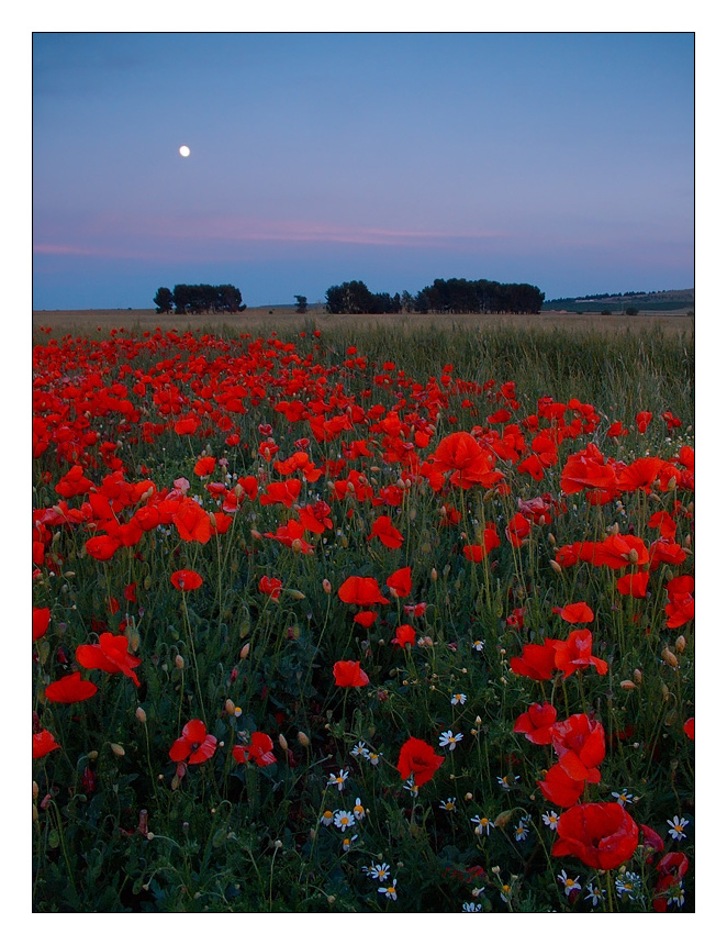 Ottima la composizione, molto bella l'atmosfera data dalle ultime luci del giorno e arricchita dalla presenza della luna.