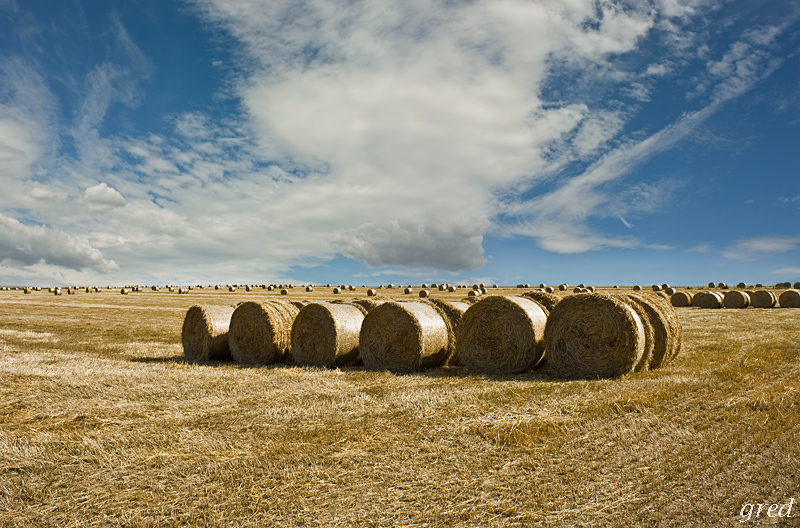 ciao daniela. Mi sarei forse avvicinato un po' di più, in modo tale da sfruttare meglio il primo piano... ma aldilà di questo, trovo la tua fotografia riuscita: quei gruppi di rotoballe sembrano essere dei guerrieri che avanzano sul territorio Wink