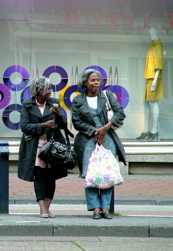 Secondo me la distanza tra il manichino e i soggetti tende a creare due scene separate e scollegate tra loro, inoltre la parte più importante che dovrebbe essere lo "sguardo" del manichino rivolto alle donne in primo piano si confonde con i riflessi sulla vetrina.