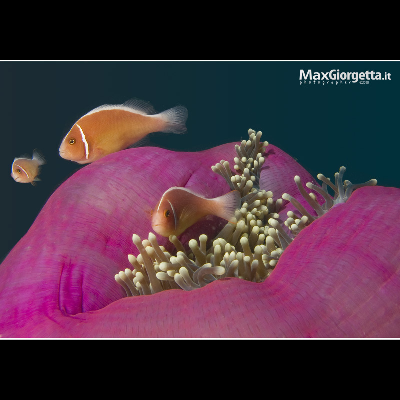 - pesci in continuo movimento, ho scattato una serie di circa 20 scatti e questo è il migliore in quanto loro entravano e uscivano dall'anemone.