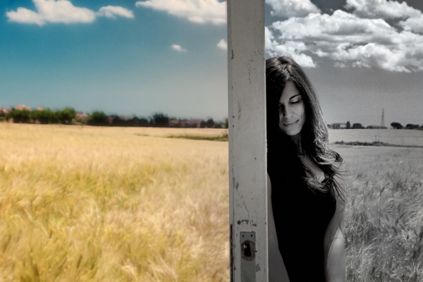 Interessante la foto, ma visto che "without you" la vita è incolore, la desaturazione non dovrebbe essere nel lato della vita dove non c'è la modella e il lato con la modella colorato? In altre parole: al contrario?