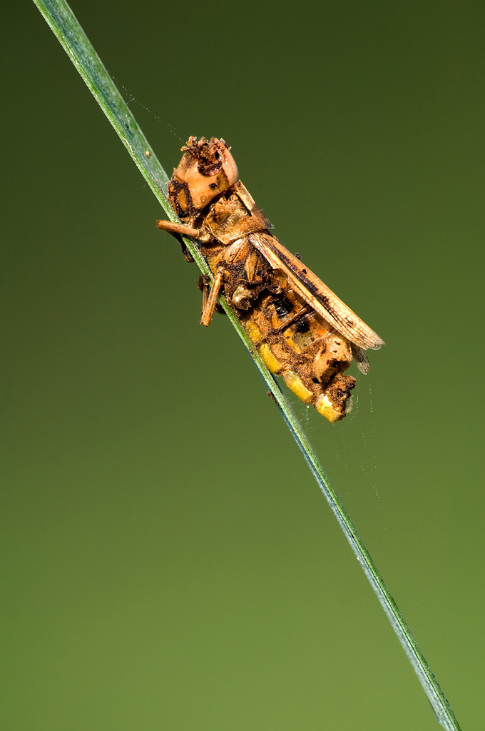 Ecco quel che credo sia un insetto morto, ho fatto un accurato lavoro di rimozione delle erbe indesiderate con le forbici per creare lo sfondo ed alzato gli ISO per la fastidiosa presenza di un leggero vento.