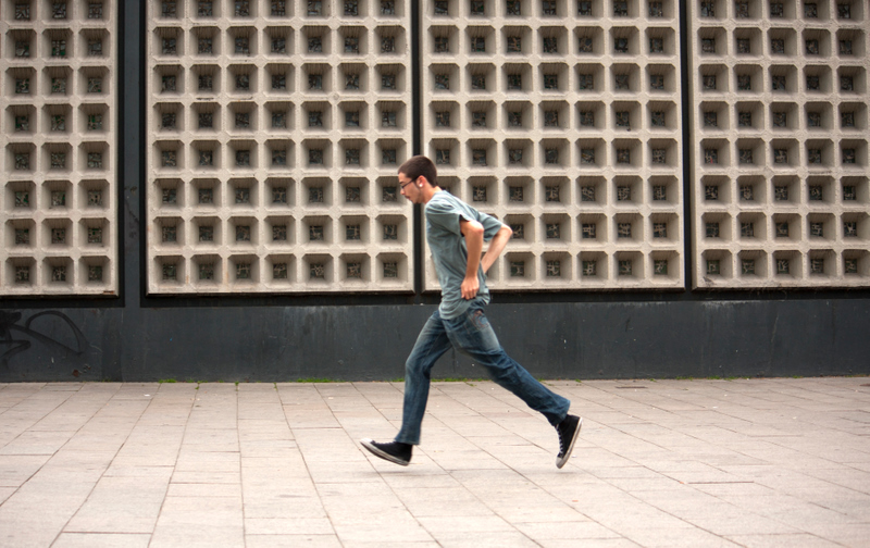 Mi piace il momento colto ed contrasto tra la geometria dello sfondo ed il movimento del soggetto. Pantaloni troppo larghi?