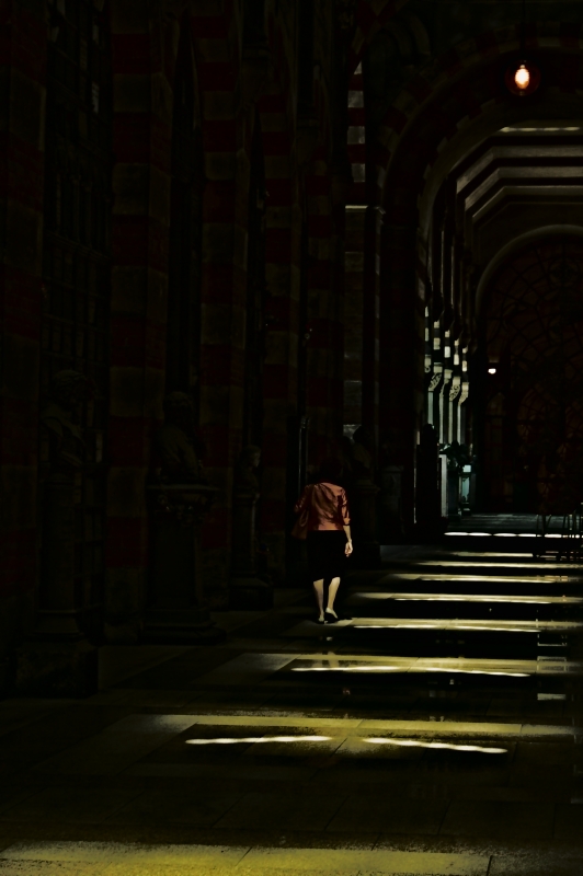 Mi piace come questa viandante esca dal gioco di ombre profonde e vaghe luci. Efficace. Ciao Tiziano