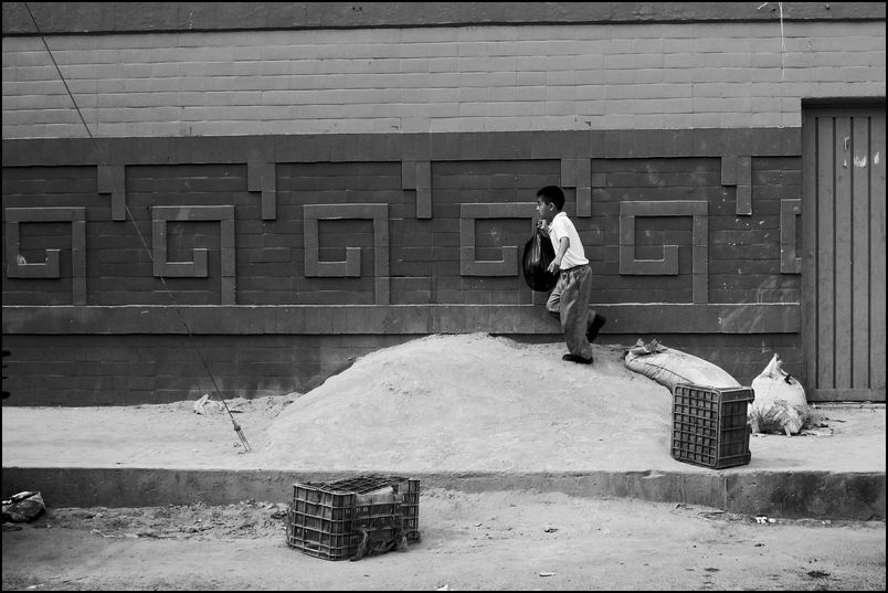 La compo invece ... quella o ce l'hai nella testa o no. Io qui della compo non toccherei veramente nulla. Mi sta bene tutto dalle scatole al filo teso, alla geometria del muro (se proprio vuoi strafare dai una correzione geometrica in post).