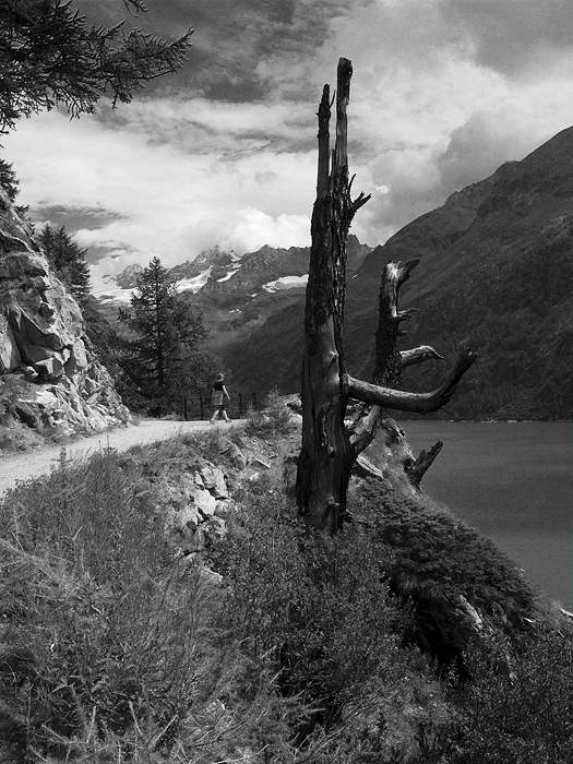 questa foto è intrigante ed a me pare che la figura umana sia essenziale e secondo me lo sarebbe stato ancora di più se fossi riuscito a riprendere un po più si strada, mangari decentrando un po' a dx l'albero. opinione personale ovviamente