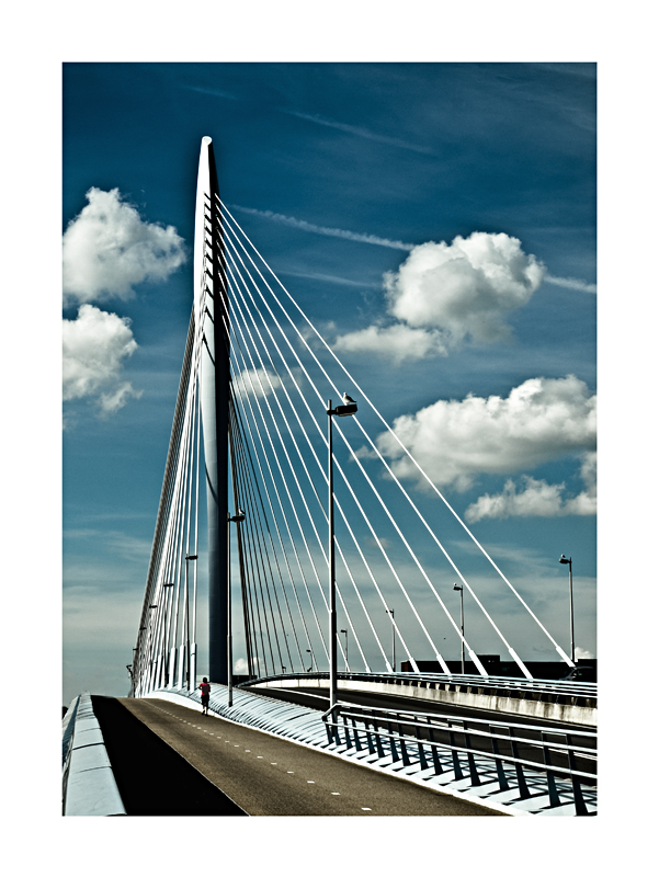 Lo svettare dei tiranti del ponte sospeso sono resi ottimamente.Si legge forza ed eleganza al contempo. Ottima composizione. Complimenti Ok!