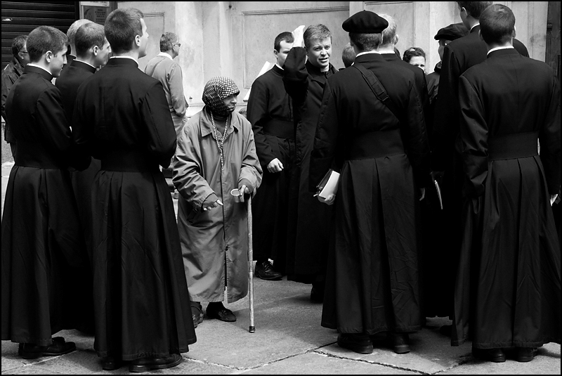 ...e sembra pure sentirsi a suo agio in mezzo ai pretini Very Happy forse spera di raccogliere qualche offerta o lo fa solo per curiosare? Fatto è che la scenetta è davvero simpatica e divertente.