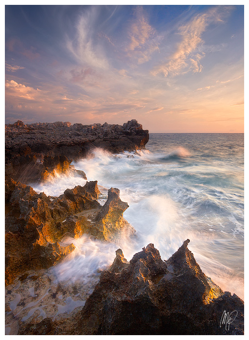 La luce è perfetta e rende l'atmosfera altrettanto bella e suggestiva. Ma mi piace anche molto per la particolare forma degli scogli: sembrano voler emulare le onde burrascose! ottima, bravo