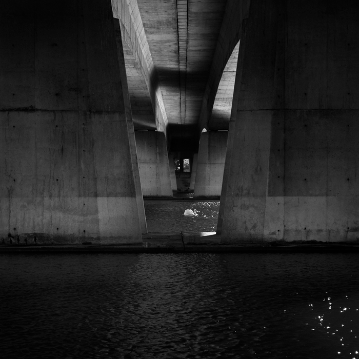 L'idea che sta alla base dello scatto (il cigno unica presenza vivente in un mondo di acqua e cemento) è molto bella, piace molto anche a me.