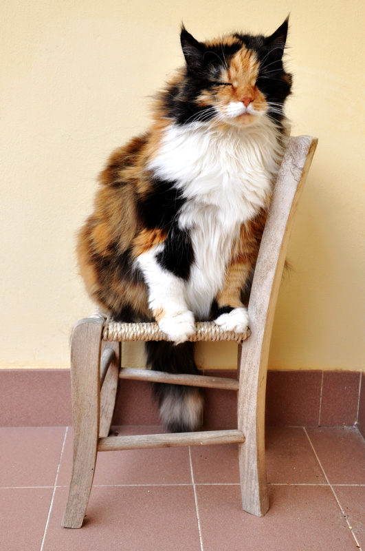 E due annotazioni....gli occhi chiusi e lo sfondo in particolare che richiama troppo uno dei tre colori del gatto....ma anche il pavimento.....