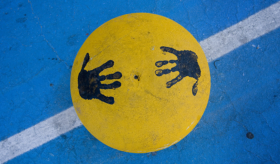 ero su una pista ciclabile e questo era un blocco di cemento giallo in mezzo su cui qualcuno aveva stampato due manate nere.Non potevo farmela scappare.  _________________