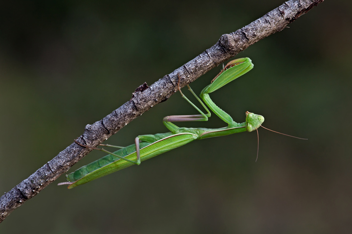 Ottima leggibilità sul robusto posatoio. La mantide gode di una messa a fuoco precisa che la rende molto piacevole da vedere.