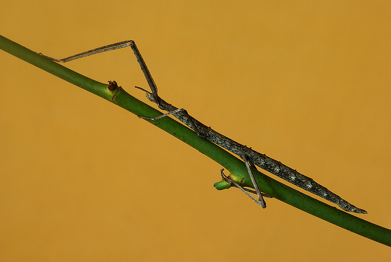 Lo sfondo nella foto non è naturale in quanto si tratta del muro del mio garage che sitrova a vicino allo stelo della rosa su cui era aggrappato il fasmide.