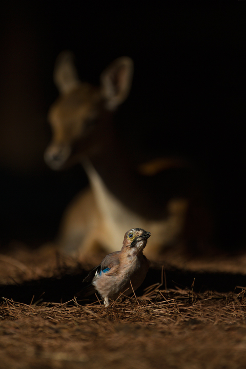 il profilo del cerbiatto che esce dall'ombra come sfondo è fantastico...