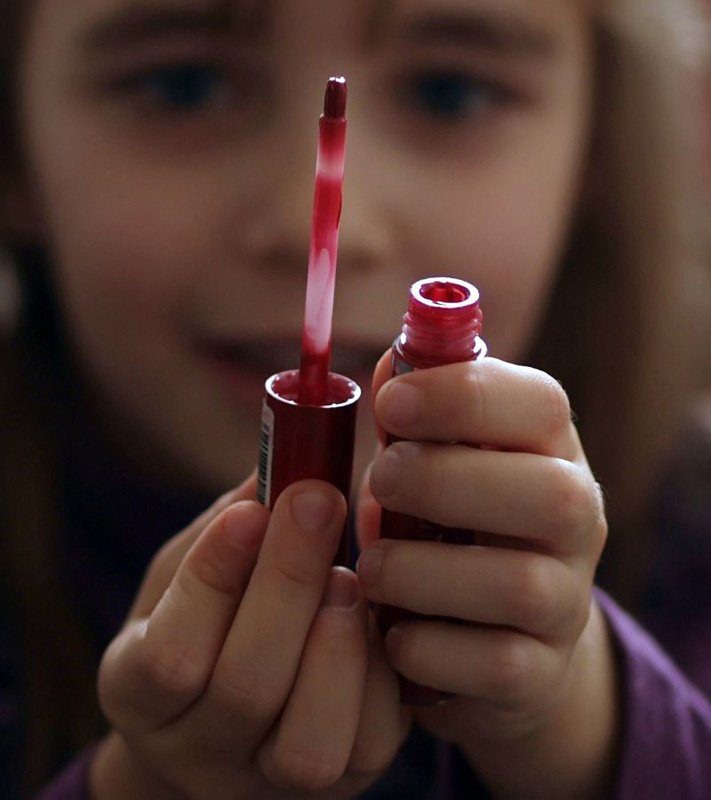 lo smalto...per di più rosso...oggetto del desiderio! è la piccola bimba che si fa donnina...bel momento!