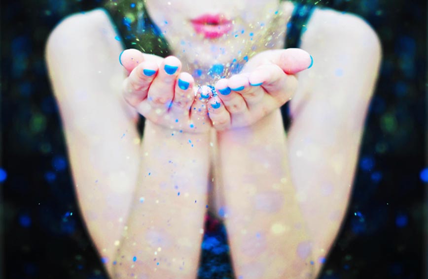 il soffio che disperde le particelle colorate in un contesto incantato...in un'atmosfera da sogno ora cosparsa di polvere magica....
