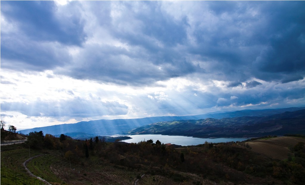 Quei raggi divini si impongono come soggetto nel vasto panorama,ma ci sono vari problemi in questa fotografia che negano la giusta atmosfera per il messaggio che dovrebbe veicolare.
