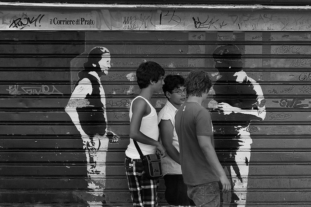Manifesti, murales, ecc... offrono spunti irrinunciabili. Le foto come questa sono ormai divenute un "classico" della street. Ciò non toglie che sono sempre godibili.