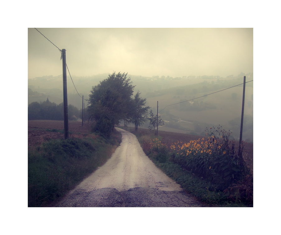 Bella e ben composta , la luce diffusa è molto bella e la strada che scende verso valle accompagnata dai pali in legno caratterizzano la foto.