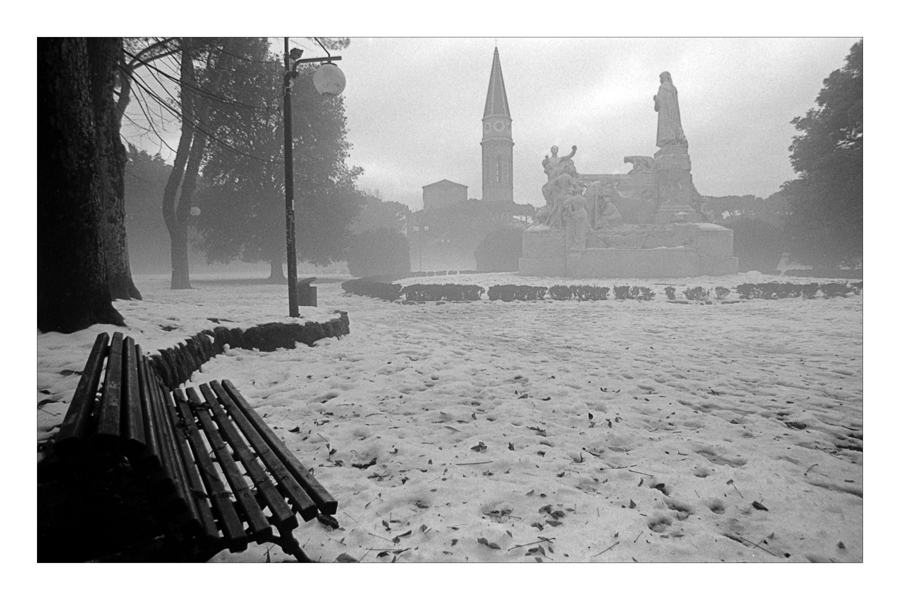Non mi dispiace affatto la resa del b/n... Compositivamente, mi pare curata: collocando quella panchina nell'angolo in basso a sinistra permetti quasi all'osservatore di ritrovarsi direttamente sulla scena. Per me, una buona immagine
