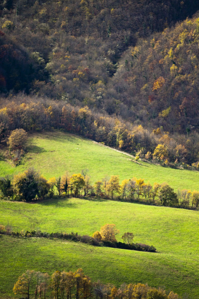 A me la foto piace, belli i prati ondulati interrotti da filari di alberi e bello il contrasto di colori tra il prato e la parte superiore dell'immagine